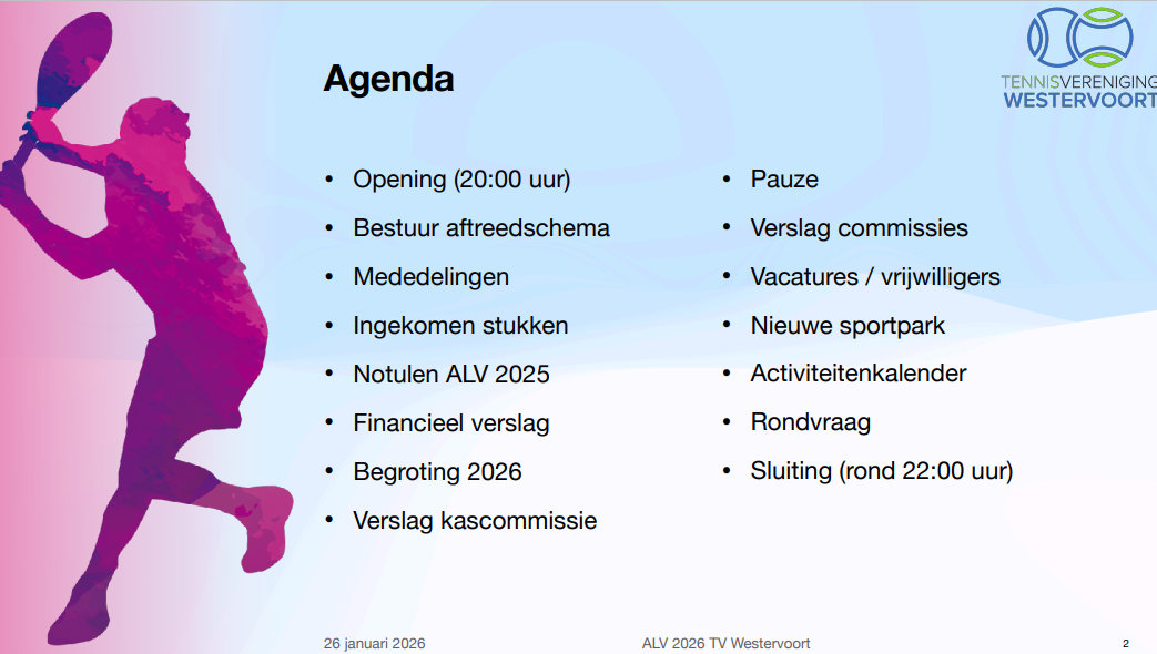 Graag willen we je uitnodigen voor de Algemene Leden Vergadering van TV Westervoort.